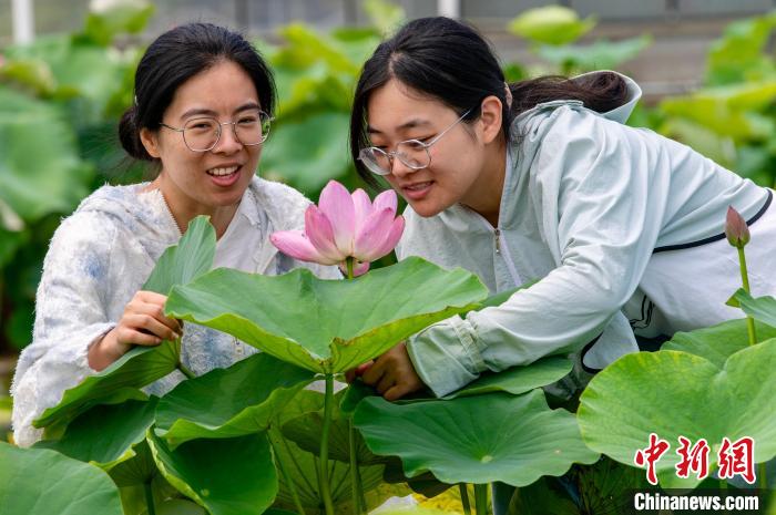 中新社浙江金华6月12日电(董易鑫 卢奕仿)6月12日,由中国宋代古莲种子培育出的莲花在浙江金华成片绽放,标志着宋代古莲实现规模化“重现”,对于遗传学研究领域而言意义重大。