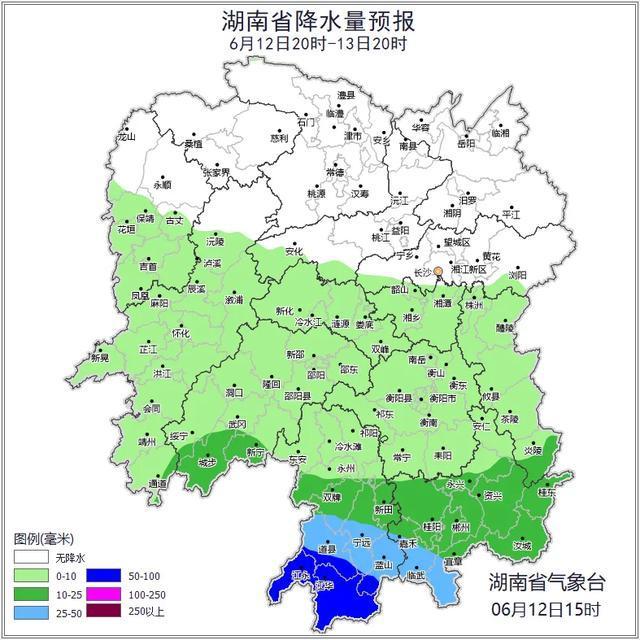 今天晚上至明天白天,湘中以南多云间阴天有小到中等阵雨或雷阵雨,其中湘东南部分地区大雨,永州南部局地有暴雨,其他地区多云间晴天;南风2~3级;最高气温32~35℃,最低气温22~24℃。