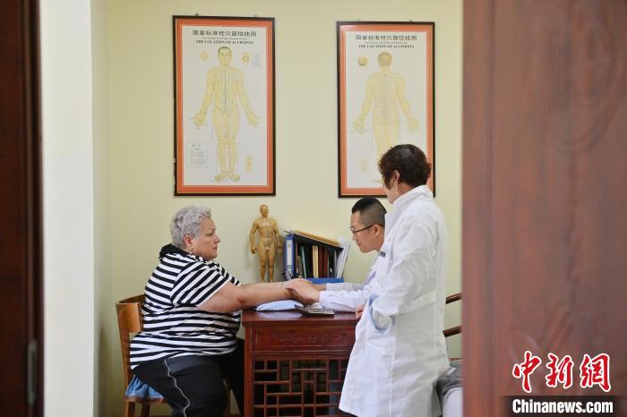 5月30日,吉林珲春,来自俄罗斯滨海边疆区的游客在看中医。中新社记者 张瑶 摄