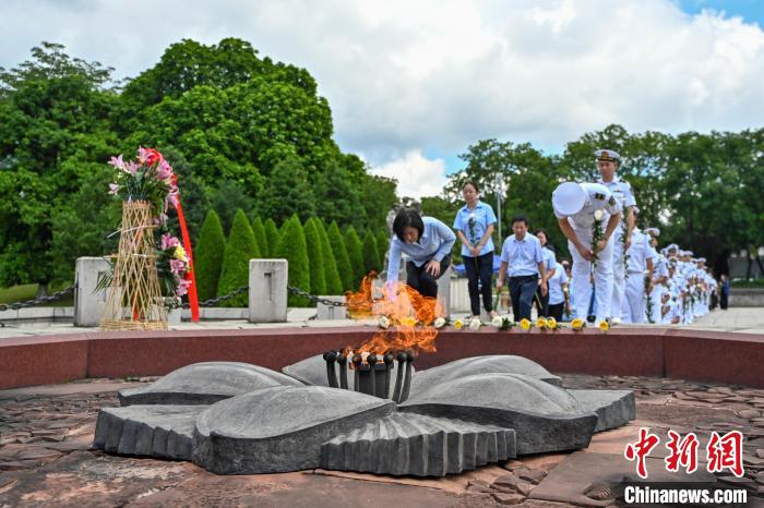 图为礼兵护送花篮摆放在英雄花火炬旁。中新社记者 陈骥旻 摄