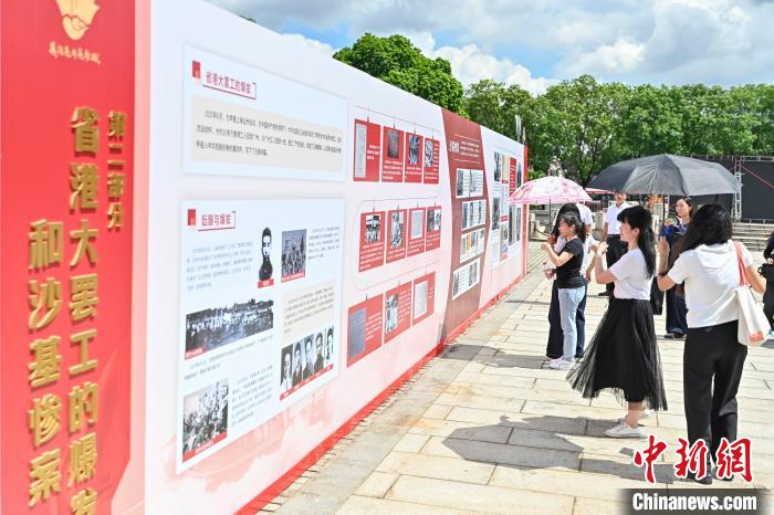 图为社会各界代表参观“铭记历史 砥砺前行”——纪念“沙基惨案”100周年图片展。中新社记者 陈骥旻 摄