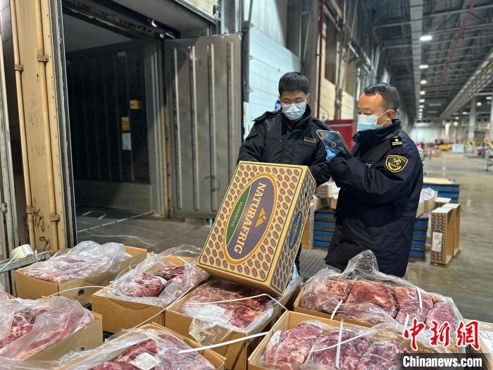 海关关员对进口肉类开展现场监管。高薇 摄