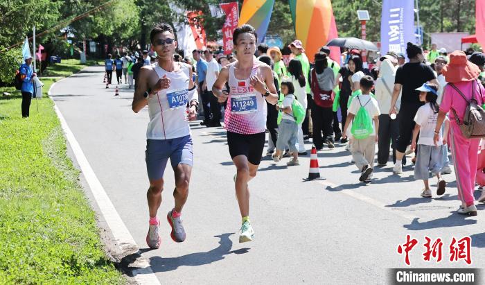 中新网哈尔滨6月23日电 (记者 王妮娜)6月22日,2025哈尔滨长寿森林半程马拉松在哈尔滨长寿国家森林公园鸣枪开赛,近万名马拉松爱好者“跑进中国大森林呼吸世界好空气”,补给站“锅包肉”、“大肘子”让参赛者直称很“东北”。