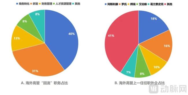 海外药企高管“回流”职务及任职外企占比(动脉网制图)