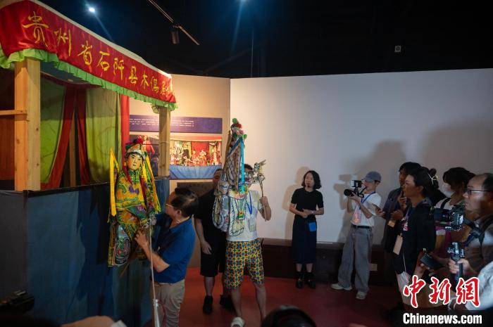 图为6月24日,媒体团在石阡非遗博物馆参观石阡木偶戏展示。唐哲 摄