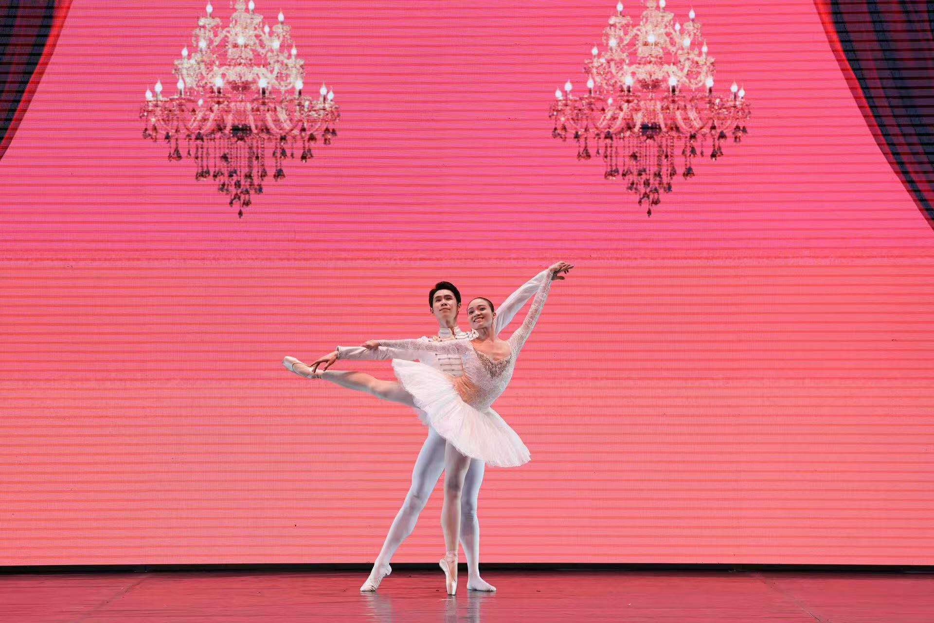 中央芭蕾舞团的青年演员配合讲座进程,以精彩演出带领现场观众感受芭蕾艺术魅力。古典芭蕾经典之作《古典大双人舞》和《吉赛尔》第一幕《婚礼双人舞》展现了中芭作为国际一流芭蕾舞团的高超艺术水准;中国民族芭蕾代表作《大红灯笼高高挂》第二幕双人舞和《牡丹亭》惊梦双人舞充分呈现了中芭对中国优秀传统文化的创新性发展与创造性转化,以浪漫唯美的爱情故事和独特的东方审美征服了埃及观众;青年演员的原创作品为舞台注入了丰富的现代气息,《不如梦一场》体现了年轻一代中芭人对芭蕾语汇的多样性探索,《承》则传递出蓄势待发、奋进有为的精神价值。