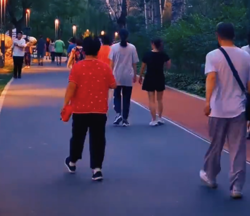 6月23日晚八点,在龙潭中湖公园。酷热天气难挡北京人锻炼热情。公园晚间人潮涌动,热闹赛过白天。