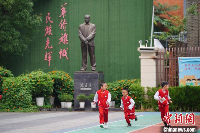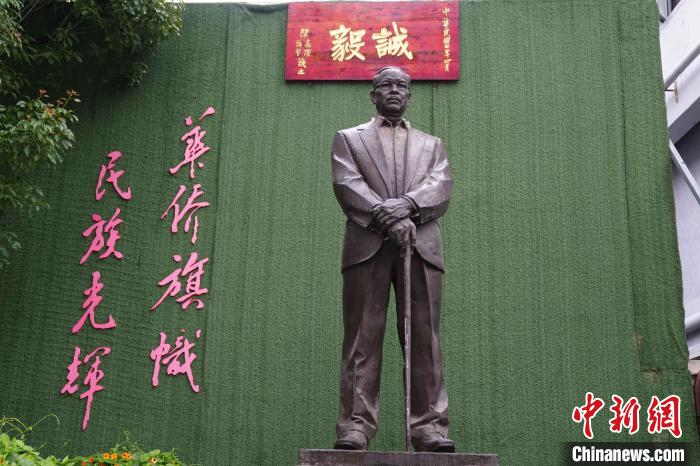 图为6月23日,侨光小学校园里矗立的陈嘉庚铜像。中新社记者 刘冉阳 摄