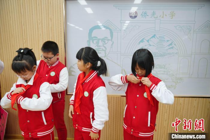 图为6月23日,侨光小学的学生讲解员在校史馆向低年级同学讲述南侨机工历史。中新社记者 刘冉阳 摄