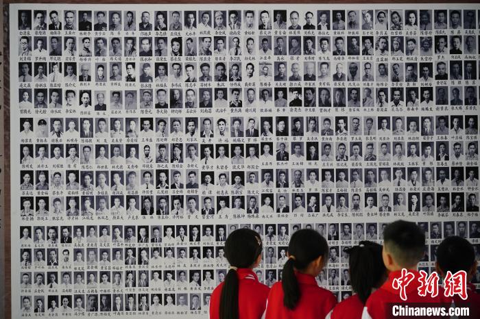 图为6月23日,学校搜集照片制作,并在教学楼走廊展示的南侨机工英雄墙。中新社记者 刘冉阳 摄