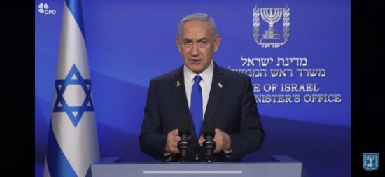 这张视频截图显示,6月13日,以色列总理内塔尼亚胡发表声明。新华社发