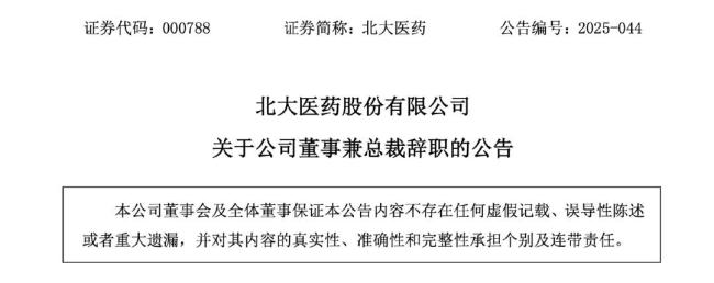 6月25日,北大医药公告称,袁平东因个人原因申请辞去董事、总裁职务,同时辞去董事会战略委员会委员职务,且不再担任其任何职务。