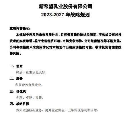 4年前,新乳业提出营业收入、净利润增长率不低于95%,积极推进有质量的并购,5年力争进入全球乳业领先行列等战略规划,目前已不再提及。