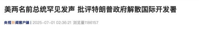 美国两位前总统奥巴马和小布什罕见地公开发表讲话,质疑特朗普政府解散美国国际开发署的行为。这两位分属民主党和共和党的前总统通过视频向美国国际开发署工作人员发表了讲话。