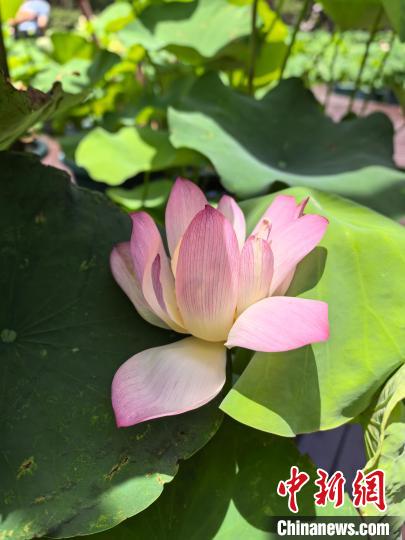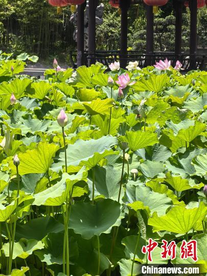 上海古猗园内莲叶接天,花开正好。中新网记者 陈静摄