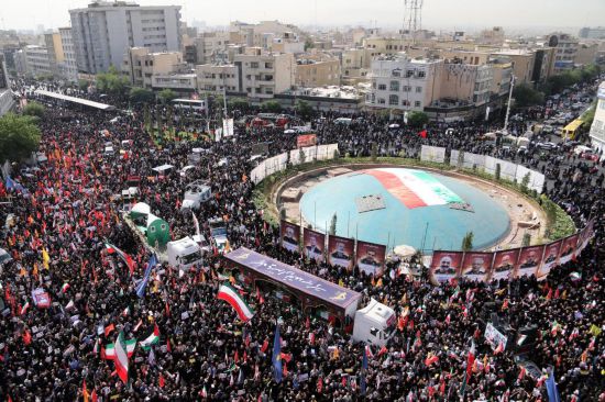 6月28日,伊朗在首都德黑兰为牺牲的军事指挥官和科学家举行国葬。新华社发