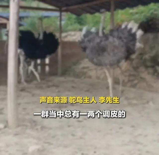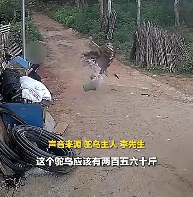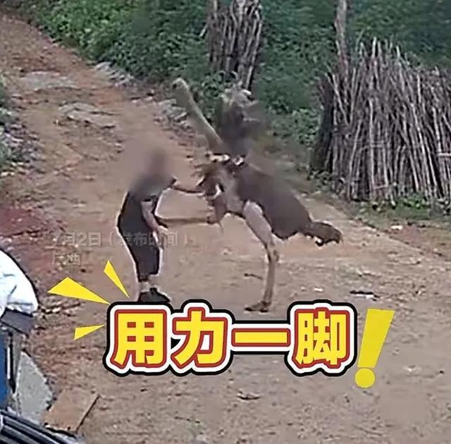 男子抚摸自家鸵鸟被踢开 调皮大鸟惹怒主人