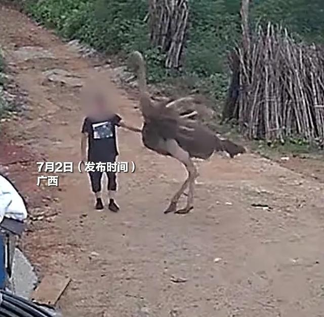 男子抚摸自家鸵鸟被踢开 调皮大鸟惹怒主人!男子在抚摸自己养的250斤鸵鸟时,不料被其一脚踹至淤青。据重庆日报官方抖音账号7月2日发布的视频显示,当天广西一男子在抚摸自己的鸵鸟时,鸵鸟突然跳起来踹了他一脚,男子踉跄了几米远,导致身体被踹处受伤淤青。