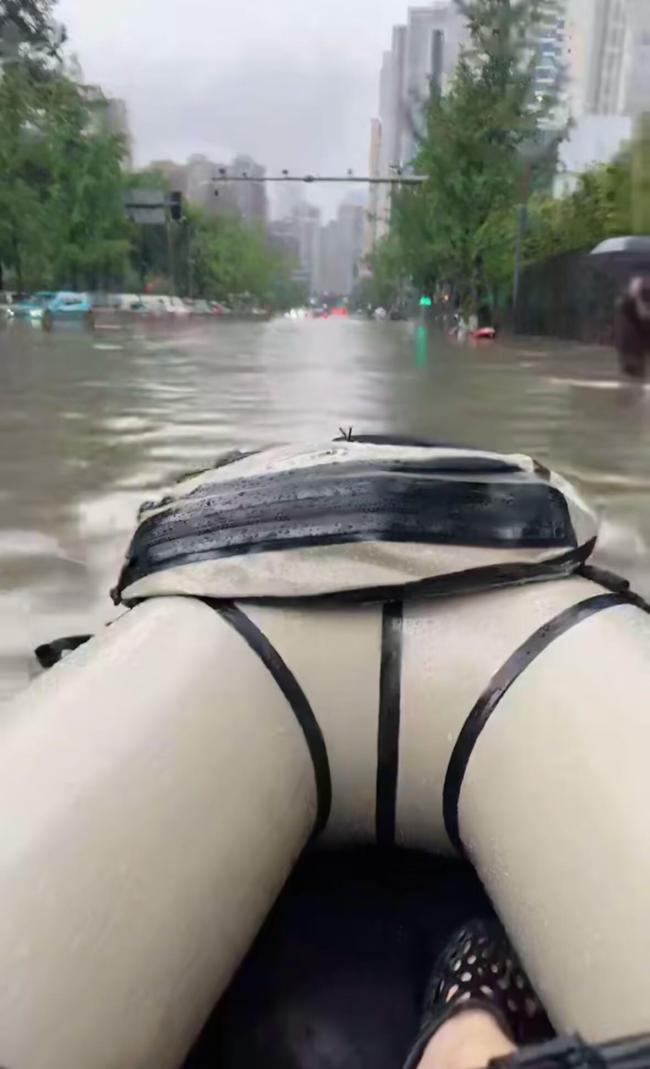 7月3日,成都遭遇暴雨,多条道路出现积水。一位成都市民在路上划船的视频迅速走红,有网友笑称这是成都人的松弛感。