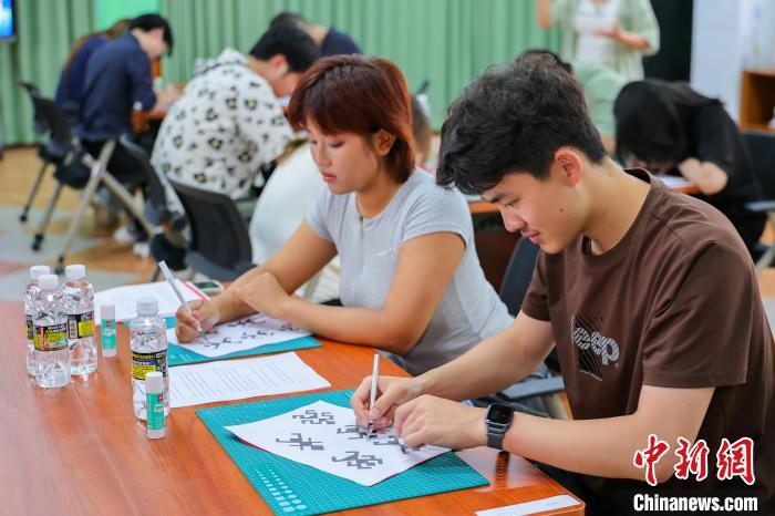 7月6日,参加2025海外华裔大学生海南研习活动的华裔学子走进海南大学,参与黎锦传统图案刻纸主题交流活动。中新网记者 骆云飞 摄