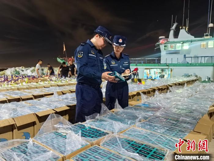 广东海警查获走私香烟现场。广东海警局 供图