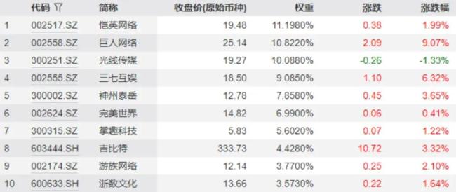 谁是A股头部游戏企业呢,动漫游戏指数的前10大重仓股或许是一个值得借鉴的参考。