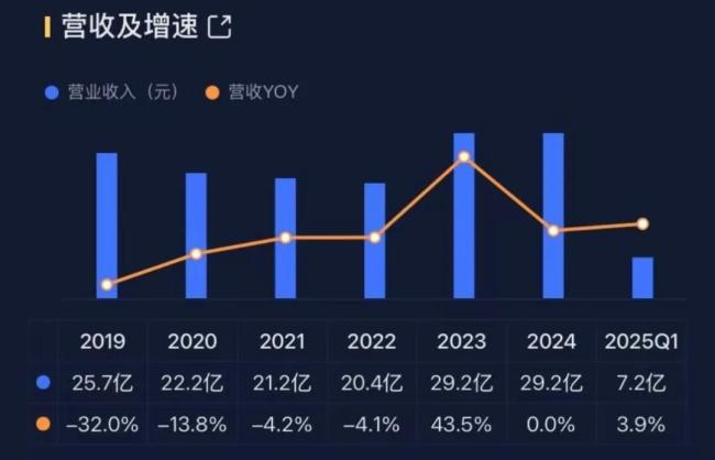 从财务数据来看,巨人网络自2019年以来以来营收就原地踏步,2025年一季度营收7.2亿,同比增长3.9%,增速同样难称亮眼,而二级市场股价的持续拉升则表明至少AI重塑游戏产品,打造现象级爆款游戏的故事在当下是讲得通的。