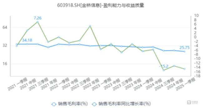 这种下滑源自传统IT服务式微,带动主营业务利润率全线下跌,以及费用实控。2025Q1,金桥信息已经跌至25.75%的毛利率并不足以覆盖高昂的费用,33.68%的销售费用率、11.55%的管理费用率、5.97%的研发费用率,三者之和销售期间费用率已经超过50%。