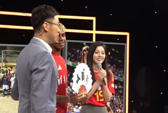 主持人邵圣懿热情接待了亚马尔,女主持也穿着19号球衣向他赠送了一份特别的礼物——一把印有亚马尔画像的折扇。折扇背面写着中国球迷对他的爱称“小孩哥”。在现场,女主持还教亚马尔用中文说了一句“小孩哥”。