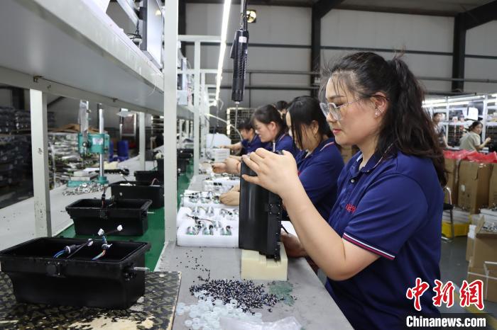 近日,位于菏泽鲁西新区的山东华泽电器有限公司生产车间内,工人们正在组装泳池机器人电机箱。