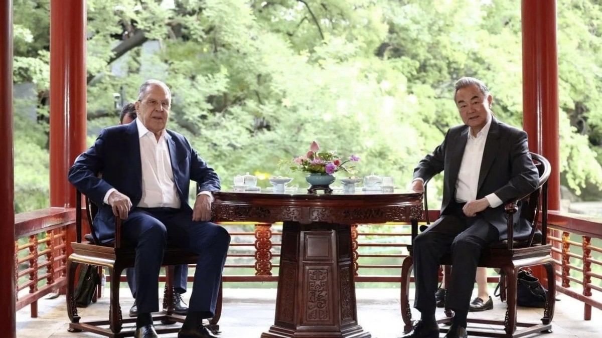 7月13日,王毅在钓鱼台国宾馆会见了拉夫罗夫,现场气氛十分融洽,两人先是在充满中式风格的庭院凉亭中茶叙交流,随后中方设宴招待了拉夫罗夫,双方在工作晚宴上继续“深入磋商”。