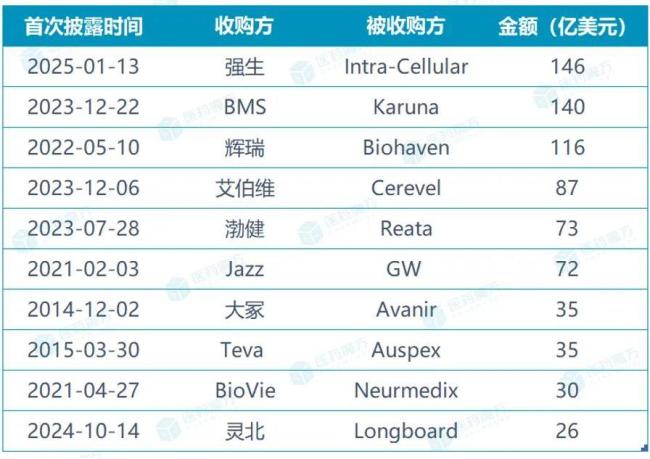 强生、BMS、辉瑞及艾伯维等行业巨头,均成为此轮并购热潮的头部参与者。其中,百亿美元级的超级并购就达3起,这一规模已超越自身免疫疾病,仅次于肿瘤,昭示着CNS的战略地位正在被重新定义。
