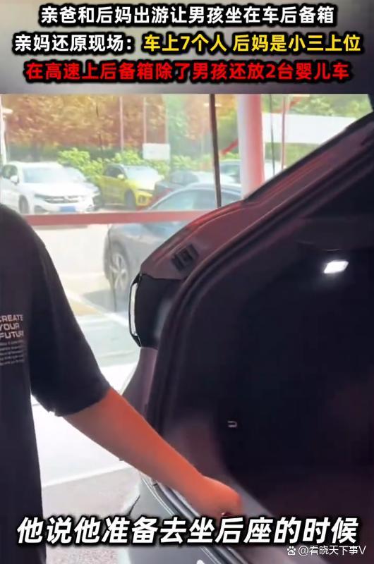 男孩与亲爸后妈远行坐后备箱数小时 亲妈听后气到发抖 安全与感受被忽视!在广东,一名9岁男孩跟随父亲生活。假期期间,他去找母亲聊天时提到,与父亲和继母出行时被安排躺在汽车后备箱内。男孩的母亲得知后非常生气,要求儿子模拟当时的情景,看到孩子蜷缩的样子,她决定找前夫理论,并已将此事诉诸法院,要求变更抚养权。