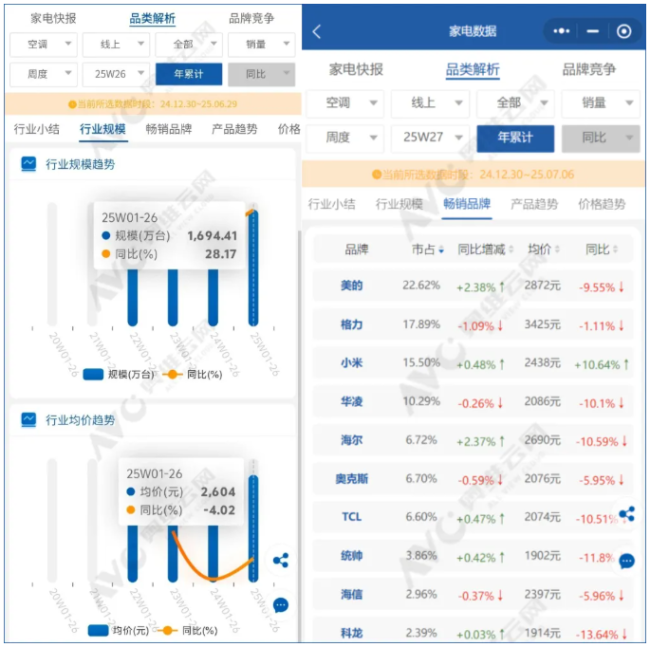 奥维云网数据显示,今年上半年线上市场,仅有小米空调的均价上涨了10.64%,其他品牌均出现不同程度的同比下降。线下市场,空调的整体均价则达到了3916元,同比小幅增长2.79%。数据反映出两个情况:一是线下用户更倾向于购买高端机型,二是互联网品牌因市场布局和渠道特性,线下话语权依旧孱弱,仅能依赖线上市场提价。(详情见:京东家电以服务促焕新引爆新风空调消费热)