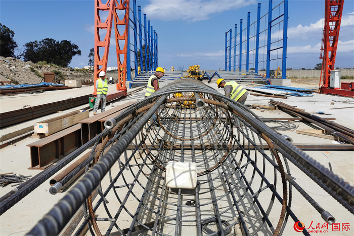突尼斯比塞大大桥项目施工现场。人民网记者 薛丹摄