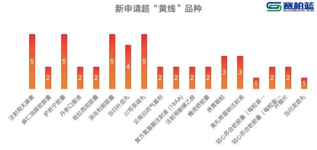 新申请超“黄线”品种中,注射用天麻素、护肝宁胶囊、消炎利胆胶囊以及川芎茶调丸均被点名过5次。