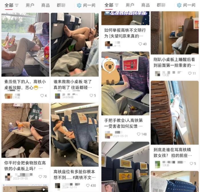 据记者观察,社媒上关于高铁上“脚放小桌板”等不文明行为的讨论层出不穷:不少网友直言“脚味儿太冲,一想到桌板上可能踩过脚就不敢吃东西”、“明明有二维码反馈,为啥没人处理?”网友纷纷表示无法忍受,呼吁铁路部门加强文明出行宣传,为乘客营造一个干净、舒适的乘车环境。