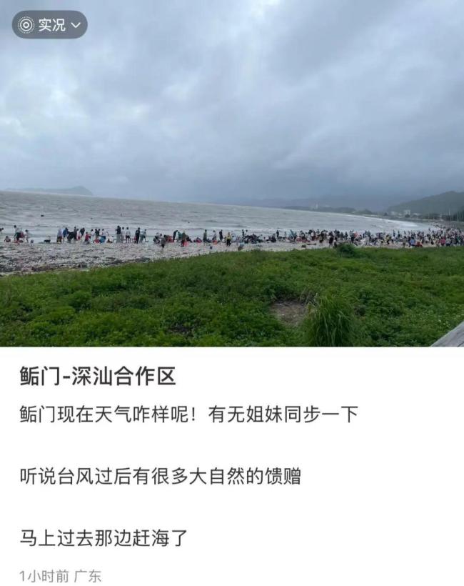 台风“韦帕”过境后,7月21日,在深汕特别合作区鲘门镇的海滩上遍地海鲜,居民冒雨赶海捡到“爆桶”。