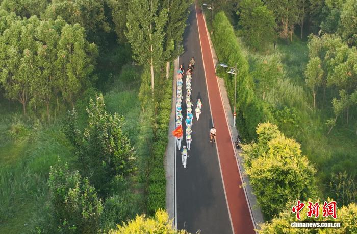 图为7月30日,市民在堤顶路上骑行。田博 摄