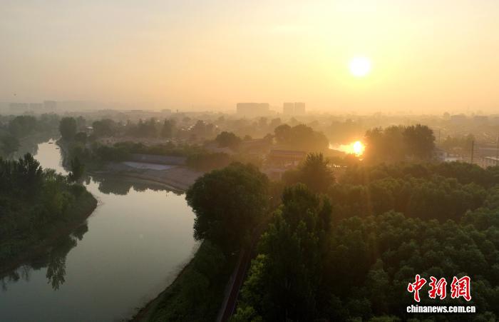 图为7月30日,晨曦下的大运河堤顶路一景。(无人机照片)田博 摄