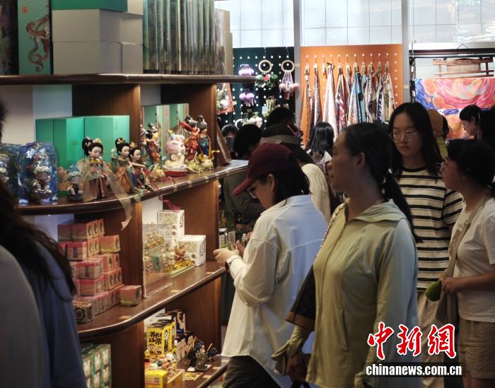 图为游客在敦煌书局内选购文创商品。 中新网记者 薛凌桥 摄