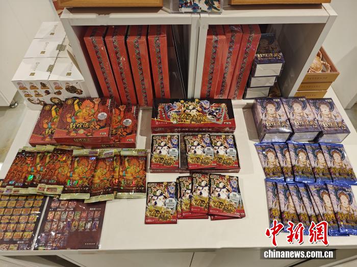 在敦煌书局,店内的“国谷”徽章、集卡等线下销售渠道融入了一批极具特色的敦煌艺术元素。