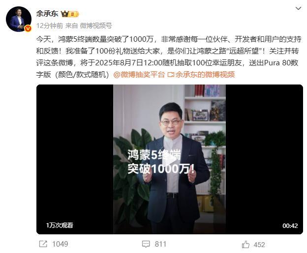 7月30日,华为终端BG董事长余承东透露,搭载鸿蒙操作系统5(HarmonyOS 5)的终端数量正式突破1000万。用户和应用积累一直是新系统面临的一大挑战。