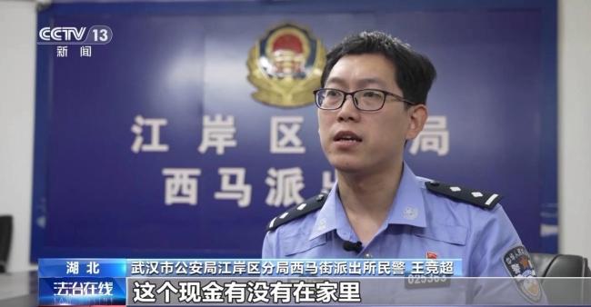 武汉市公安局江岸区分局西马街派出所民警王竞超:我们就想核实一下,这个现金有没有在家里。当时跟老人沟通也是怕他们受到电信诈骗,钱被洗钱团伙取走这种情况。我们就希望老人把这个现金拿出来,核实一下有没有在家里。