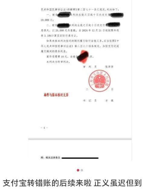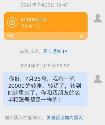 一位网友在社交平台分享了自己一年前在支付宝转错两万元到陌生人账号的案件最新进展。2024年7月,何女士计划归还朋友李女士两万元,因当日转账额度受限,她委托妹夫代为转账。妹夫通过支付宝账号查找功能找到对方账号,并输入李女士姓名核验无误后,成功转去两万元。