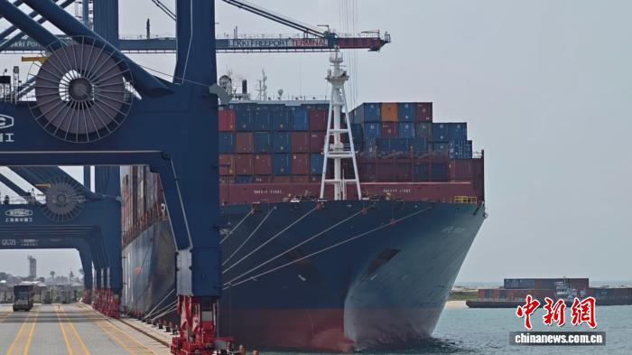 7月27日,集装箱货轮停泊在莱基港。中新社记者 关雪昭 摄