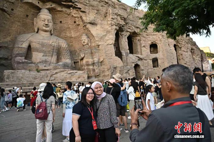 随后,参访团一行来到世界文化遗产云冈石窟,这里是公元5世纪中西文化融合的历史见证,59000余尊造像吸收融合了中亚的犍陀罗艺术和印度本土的秣菟罗艺术风格,与印度阿旃陀石窟、阿富汗巴米扬石窟并称世界三大石雕艺术宝库。