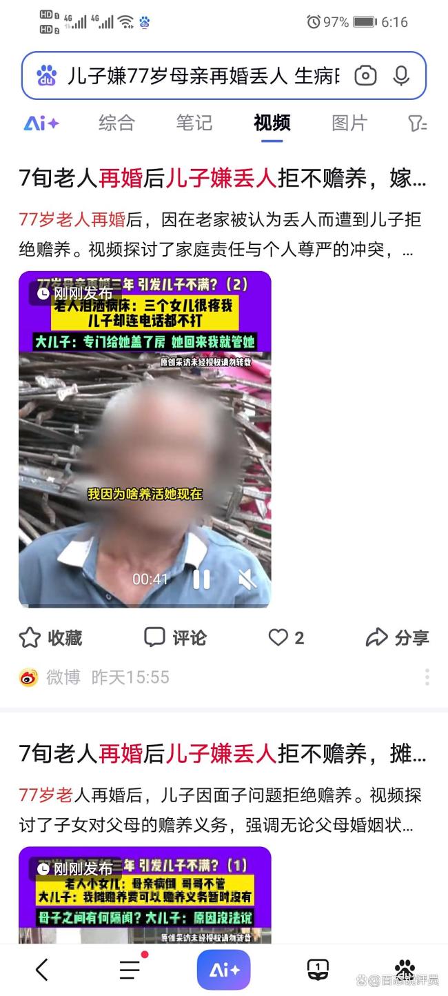 7旬老人再婚后儿子嫌丢人不赡养 孝道何在?!77岁的老太太在河南驻马店新蔡县的家庭纠纷引起了社会的关注。这位老人早年照顾患病丈夫长达8年,直至其离世。三年前,为了给自己的晚年找个伴,她在未告知子女的情况下选择再婚。然而,大儿子却因此感到丢脸,对母亲的养老问题置之不理。
