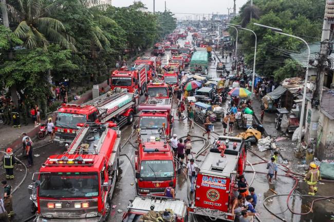8月6日,菲律宾马尼拉一贫民窟发生大火,至少1500户家庭受到影响,3人受伤。大量消防车停在火灾现场附近,直升机也参与了灭火工作。居民和消防员共同努力扑灭大火,一些居民抢救出个人物品。火灾后,许多棚屋被烧毁,居民们查看受损情况。现场照片显示,消防员们在火场中积极工作,努力控制火势。