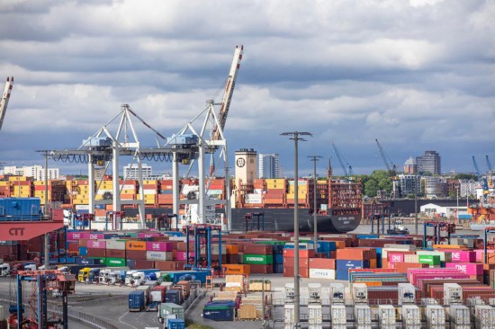 这是5月28日拍摄的德国汉堡港口与物流股份公司旗下汉堡港CTT集装箱码头景象。新华社记者张帆摄